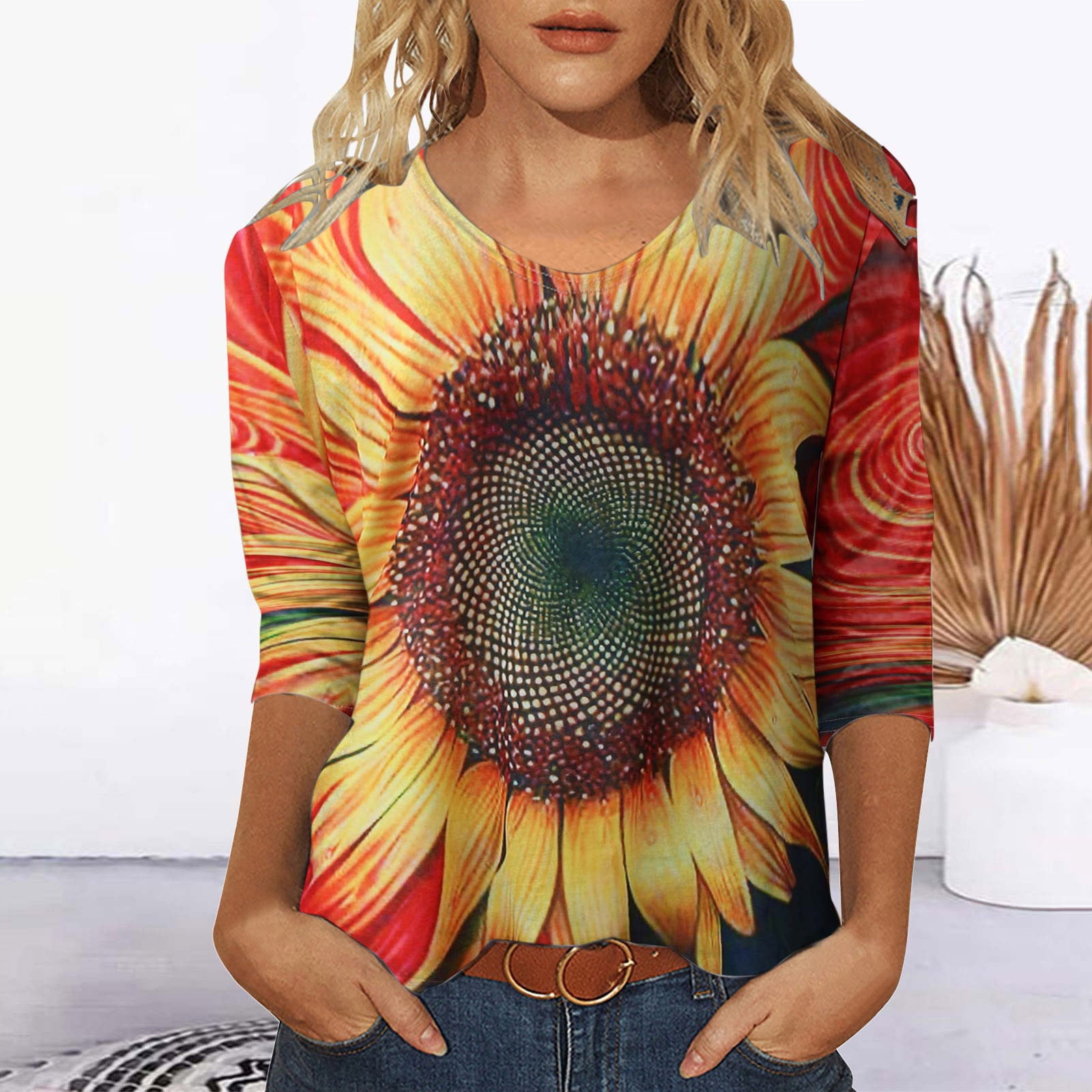 Women T Shirts Long Sleeve Round Neck Botanical Printed Loose Ladies Clothes Spring Summer Vacation Fashion Casual Beach Daily Tshirt Mother S Day Gift Tee Tops Walmart Com